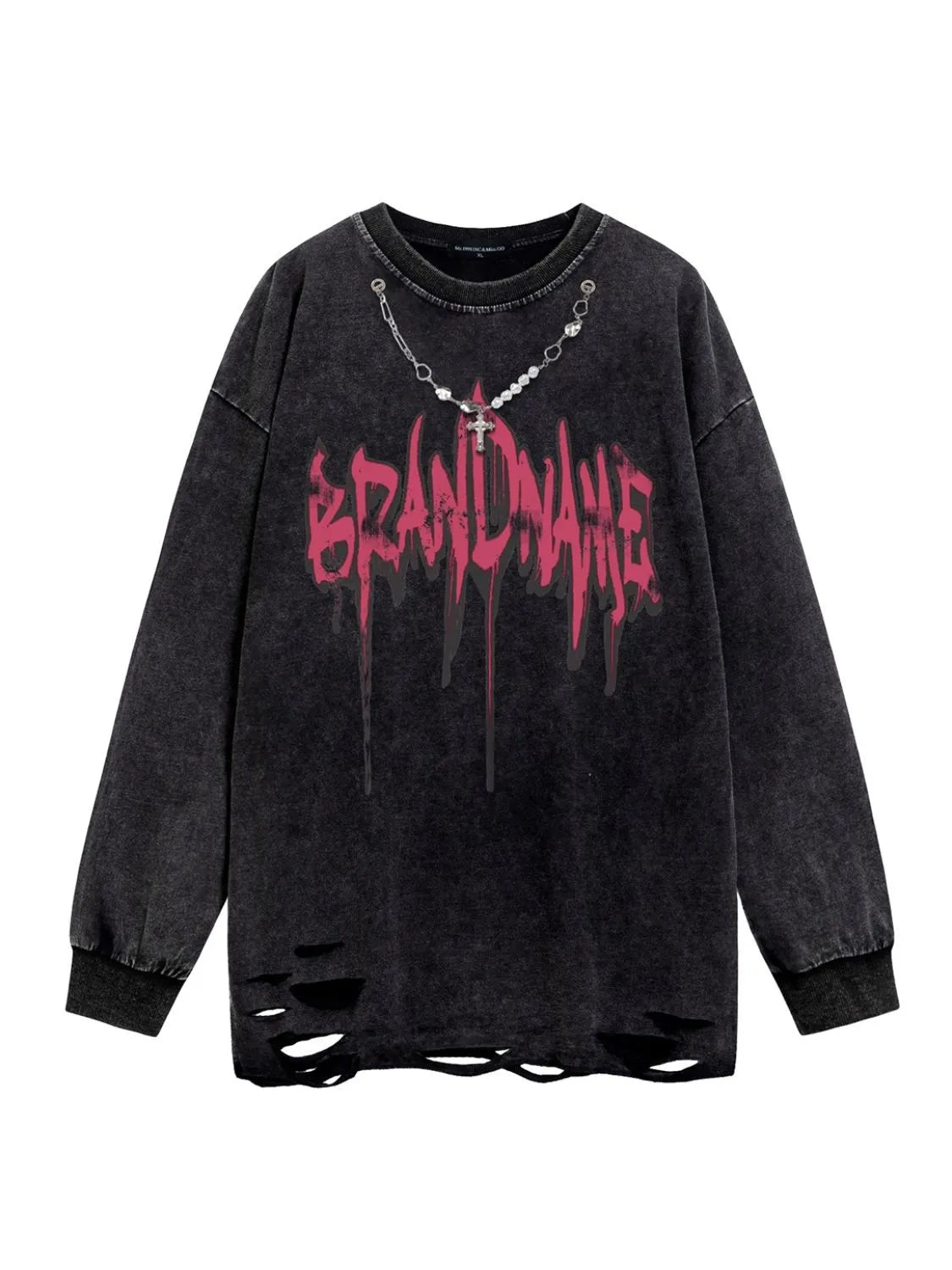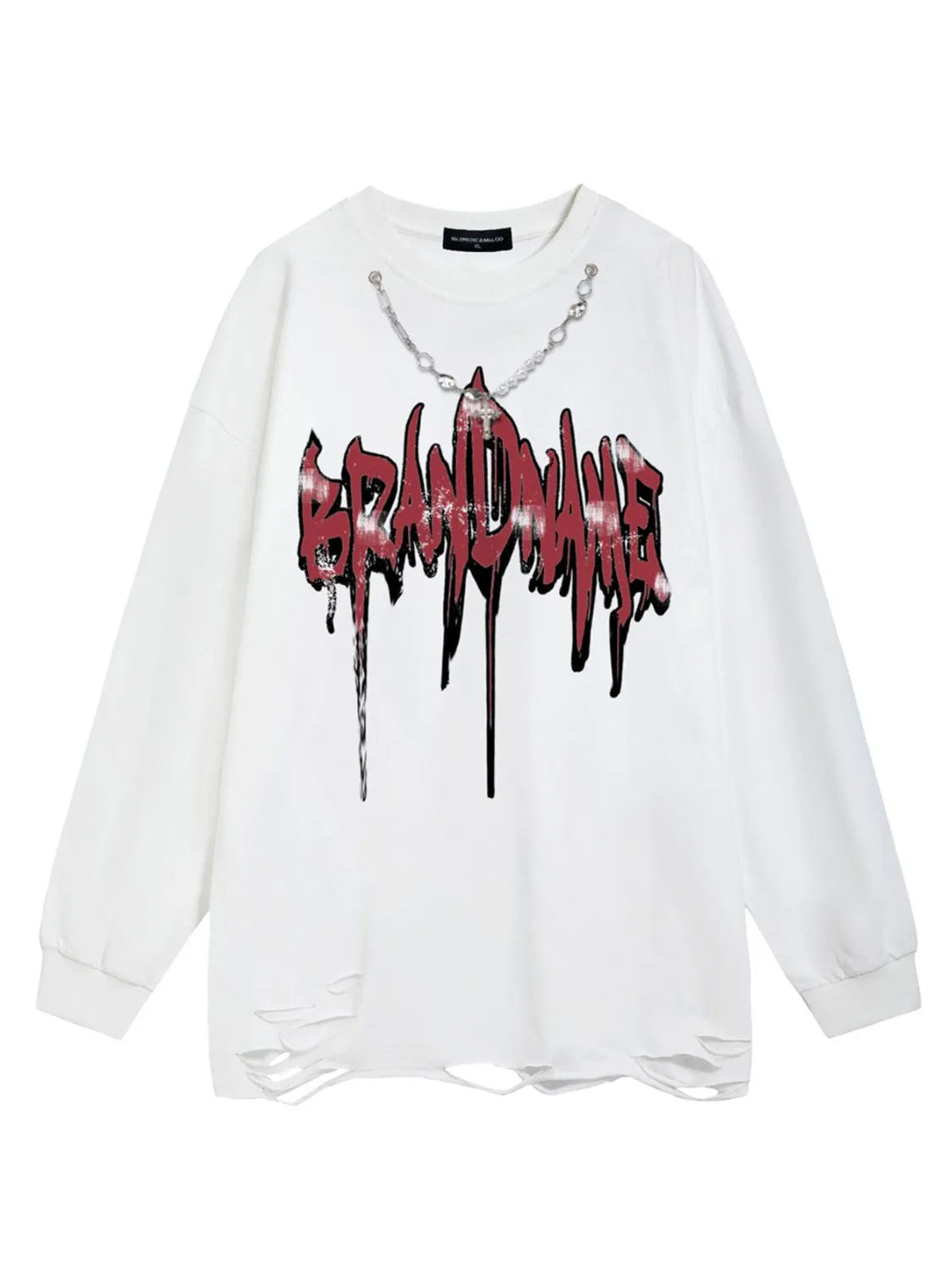 Men's Distressed Hem Chain Detail Oversized T-Shirt