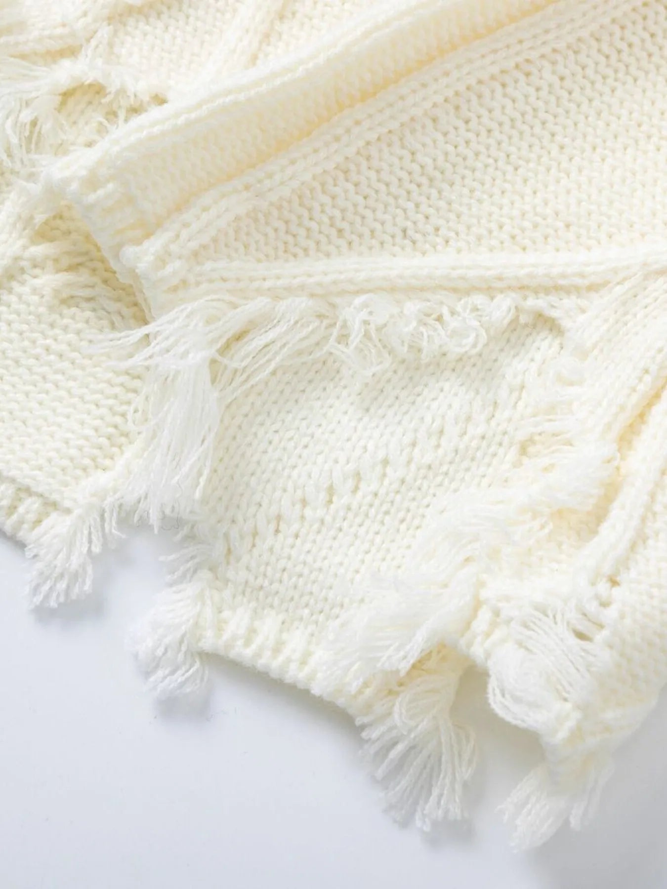 - Features:Oversized,Distressed,Cable-Knit,Raw Hem