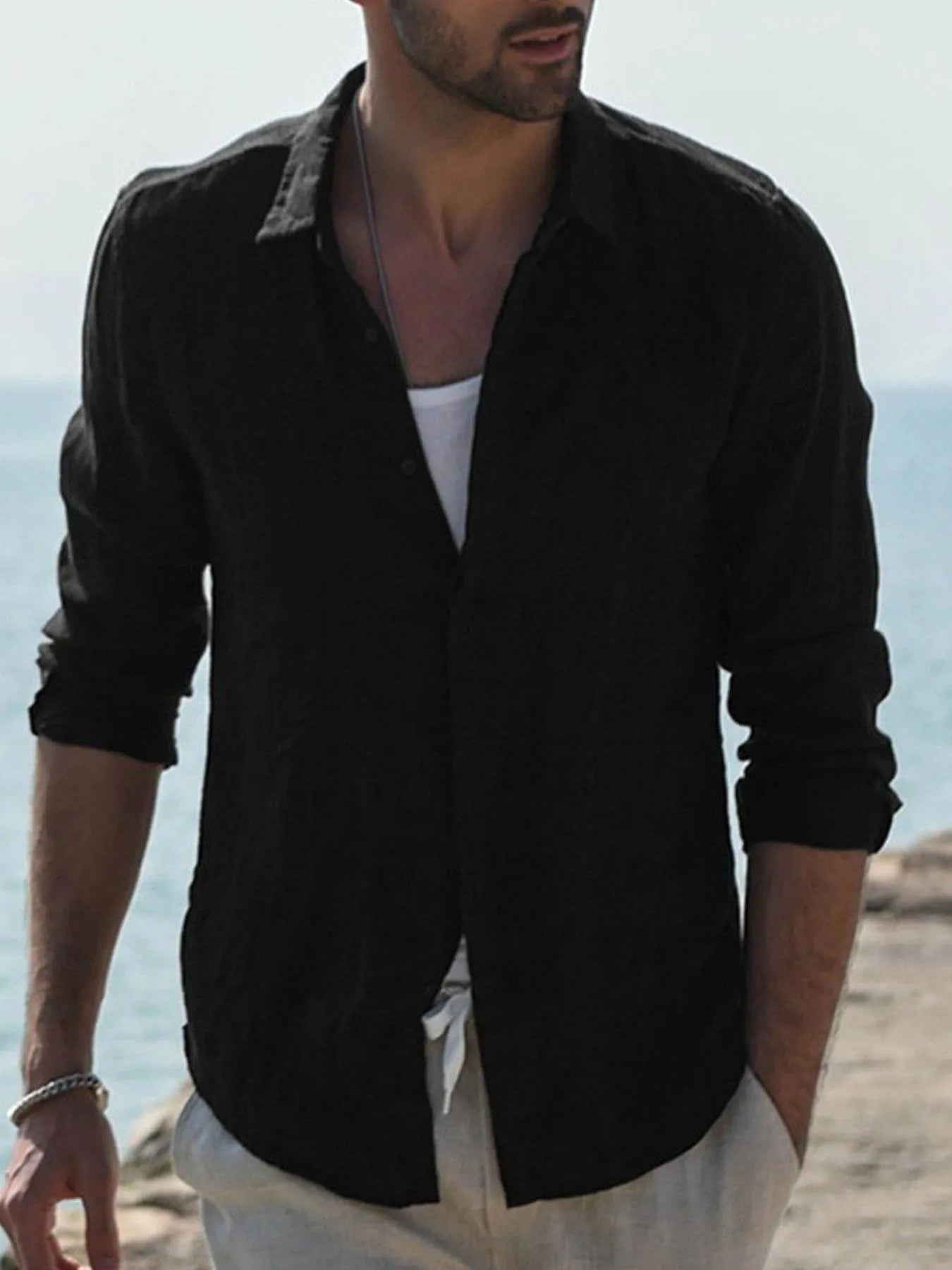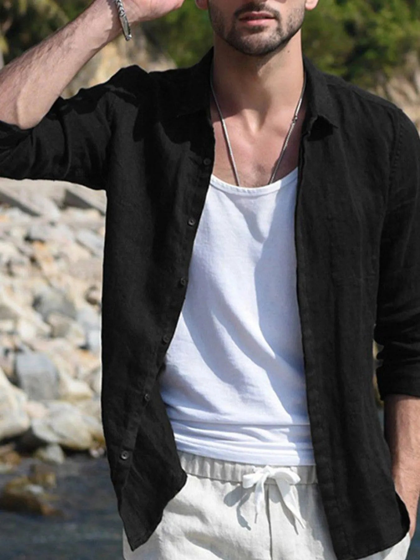 Men's Full Size Casual Linen Long Sleeve Shirt Plus Size