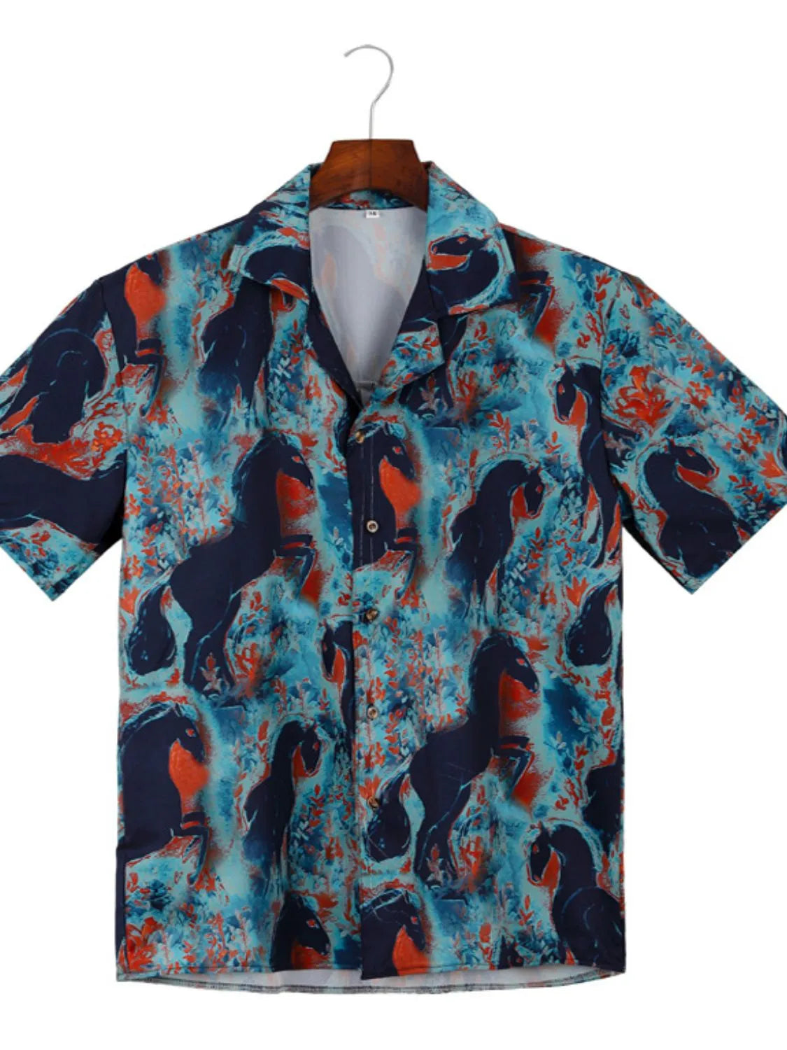 Men's Full Size Printed Button Up Short Sleeve Shirt Plus Size