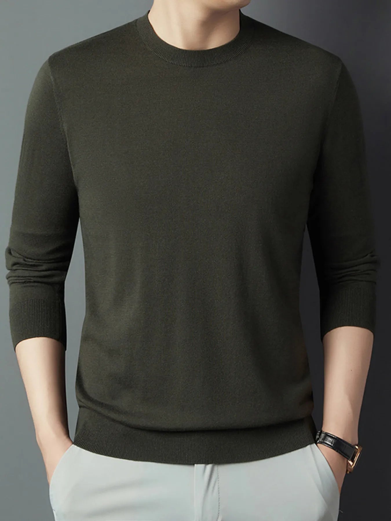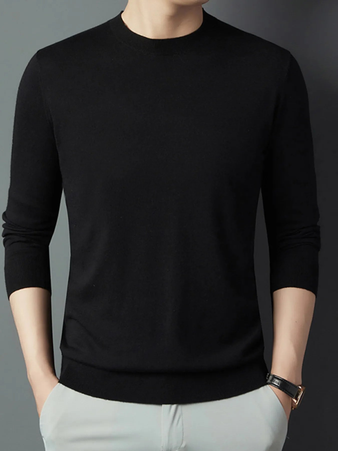 Men's Full Size Round Neck Long Sleeve Knit Top Plus Size