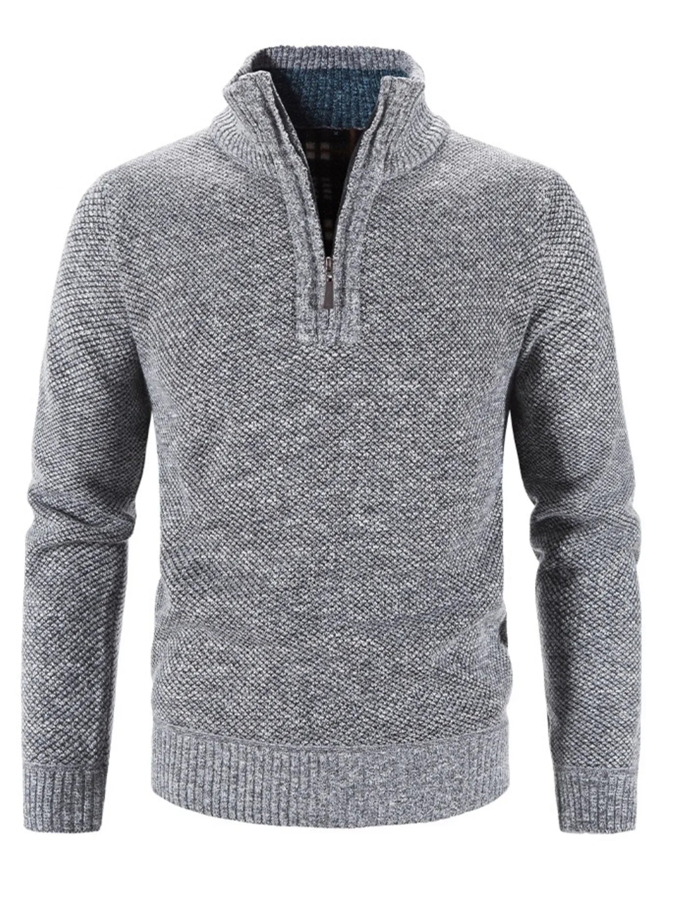 Men's Plus Size Quarter Zip Long Sleeve Sweater