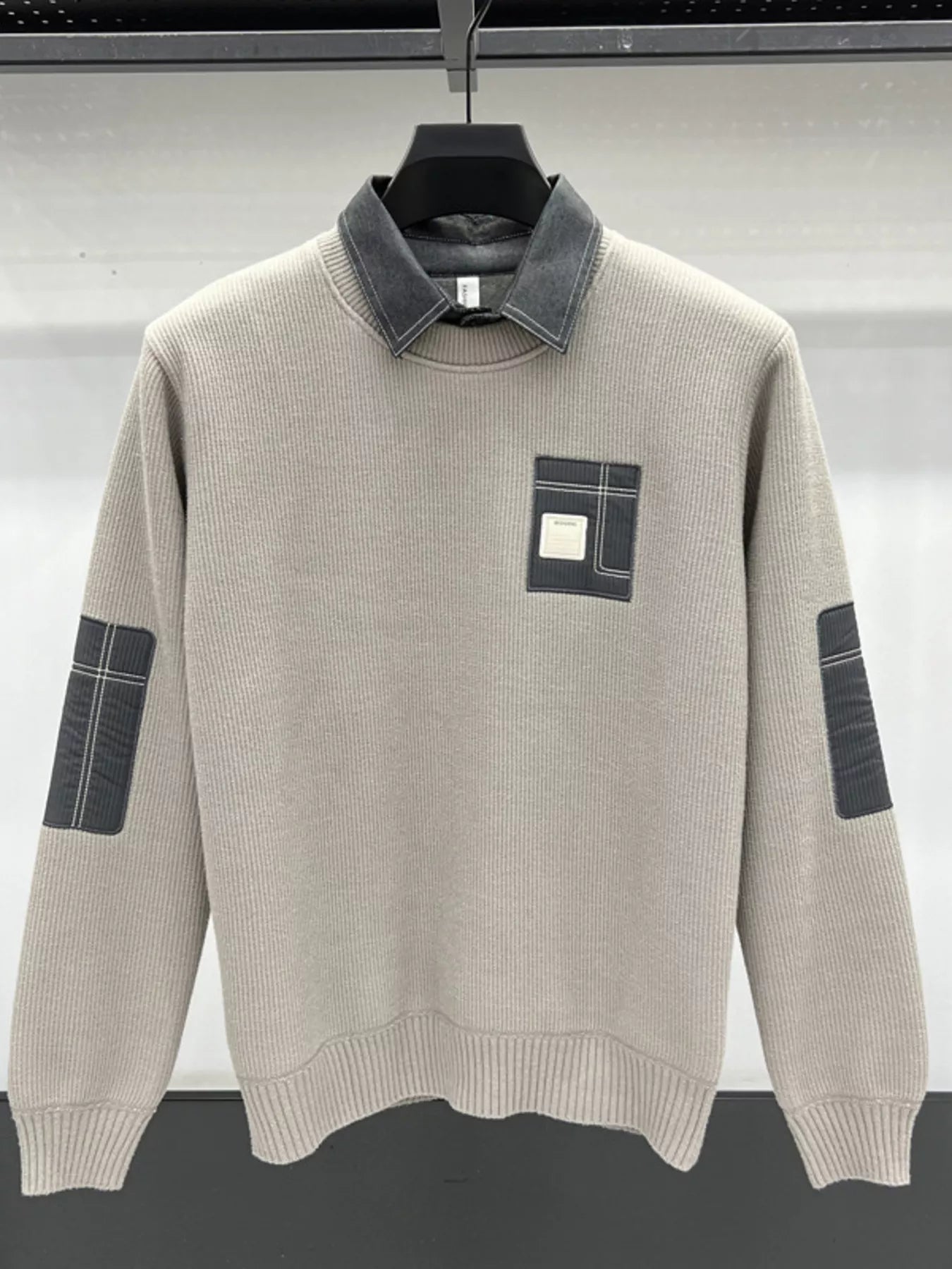 Men's Plus Size Ribbed Hem Long Sleeve Sweater