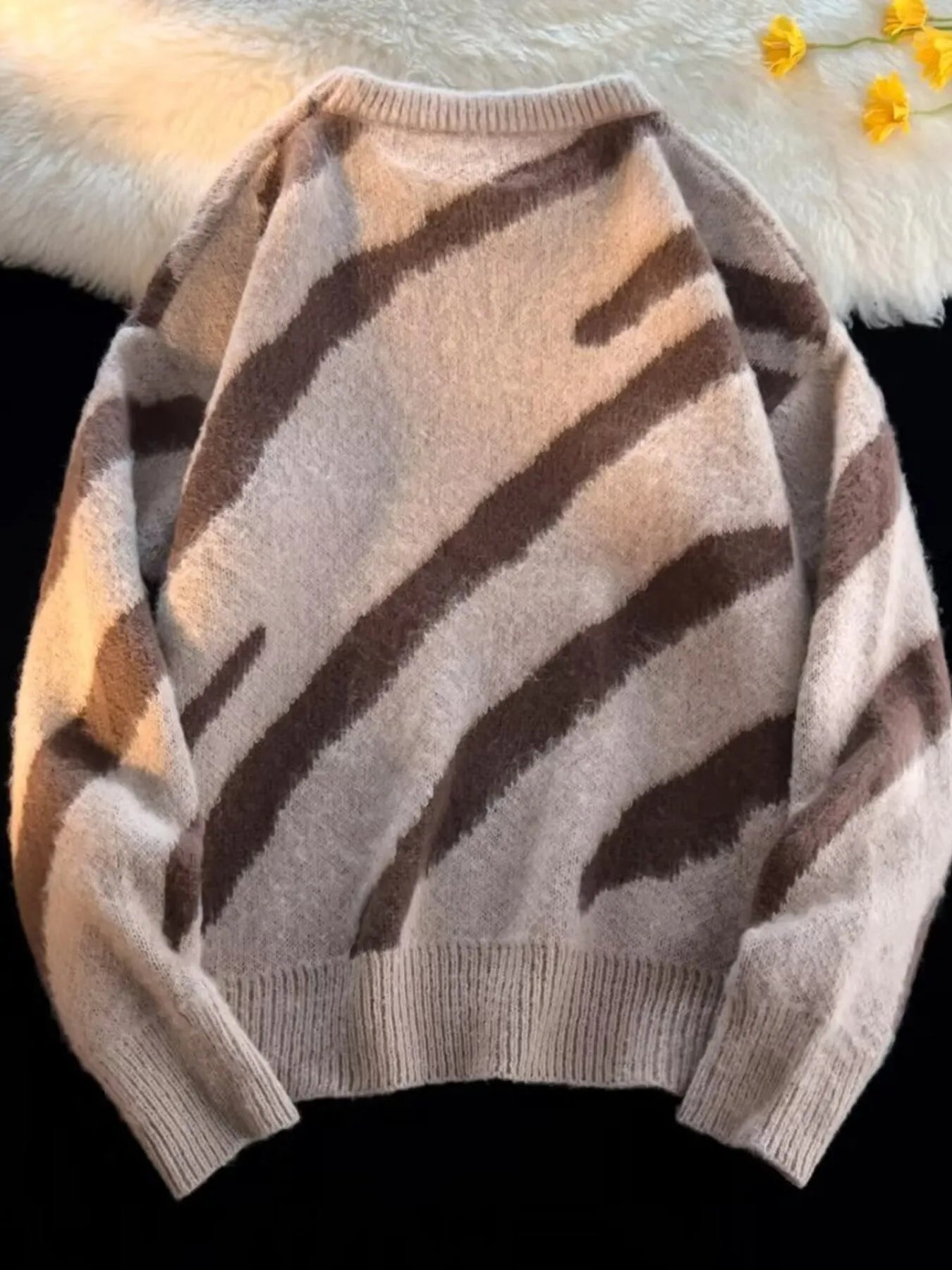 Men's Striped Fuzzy Knit Pullover Sweater
