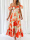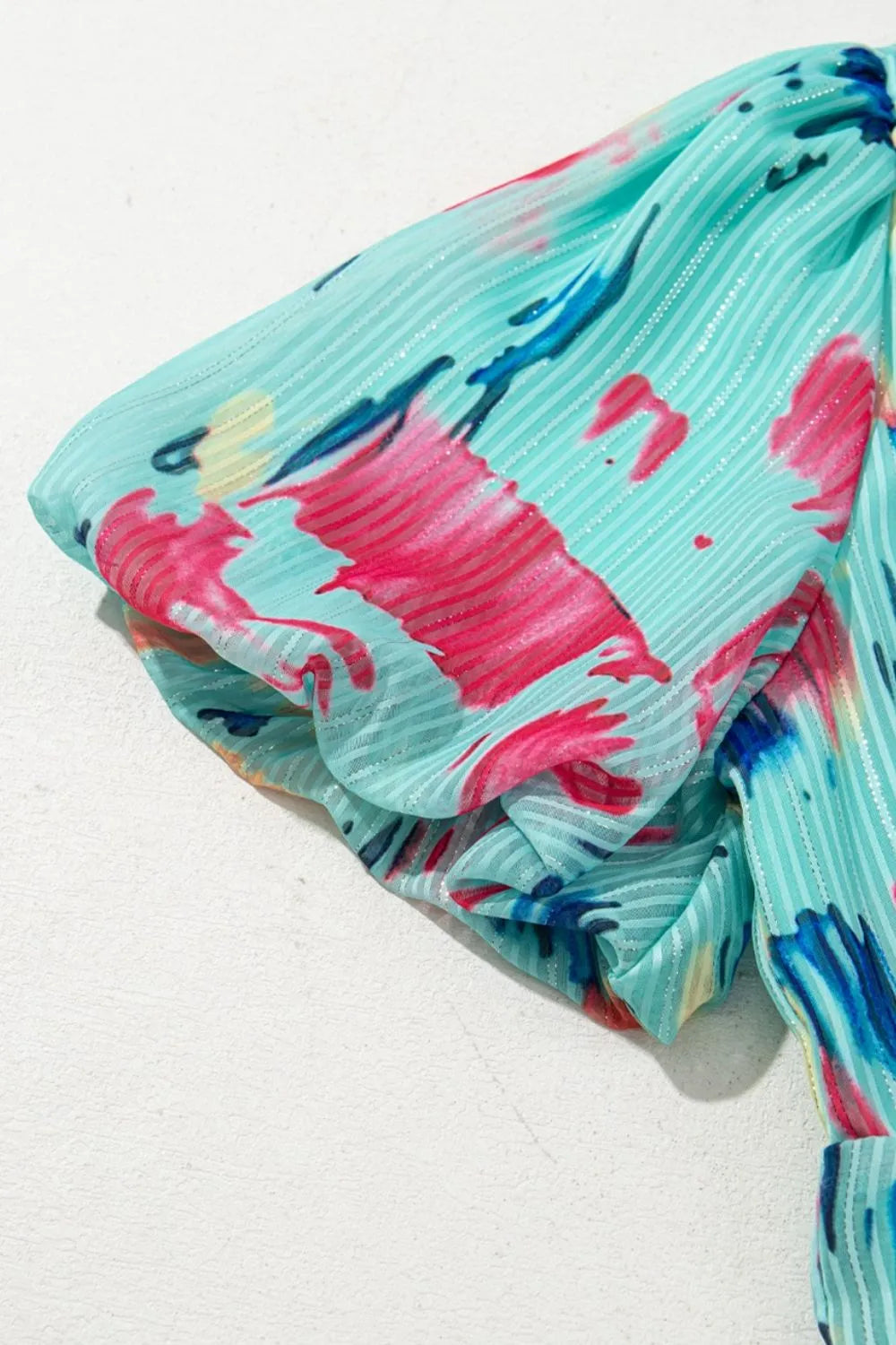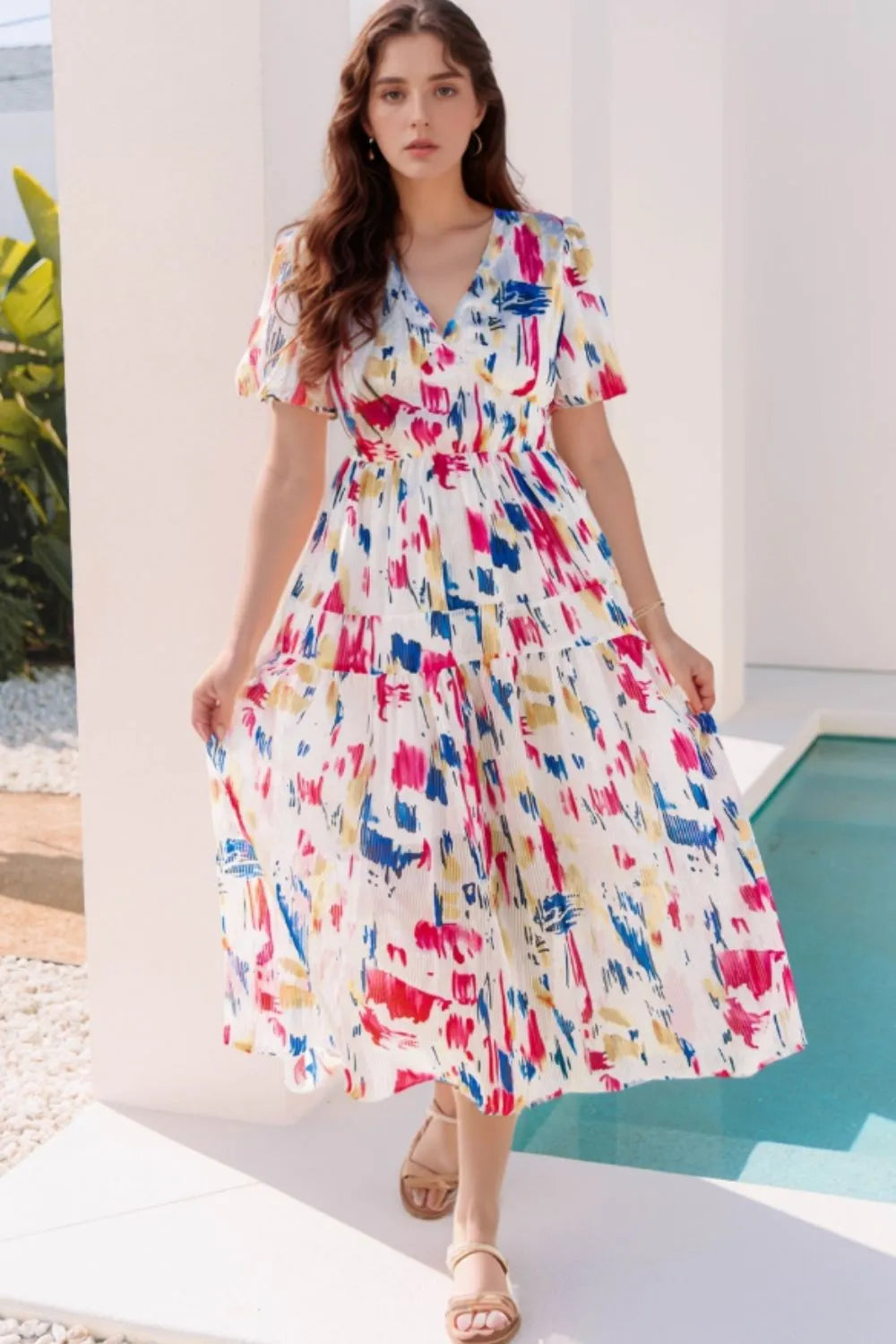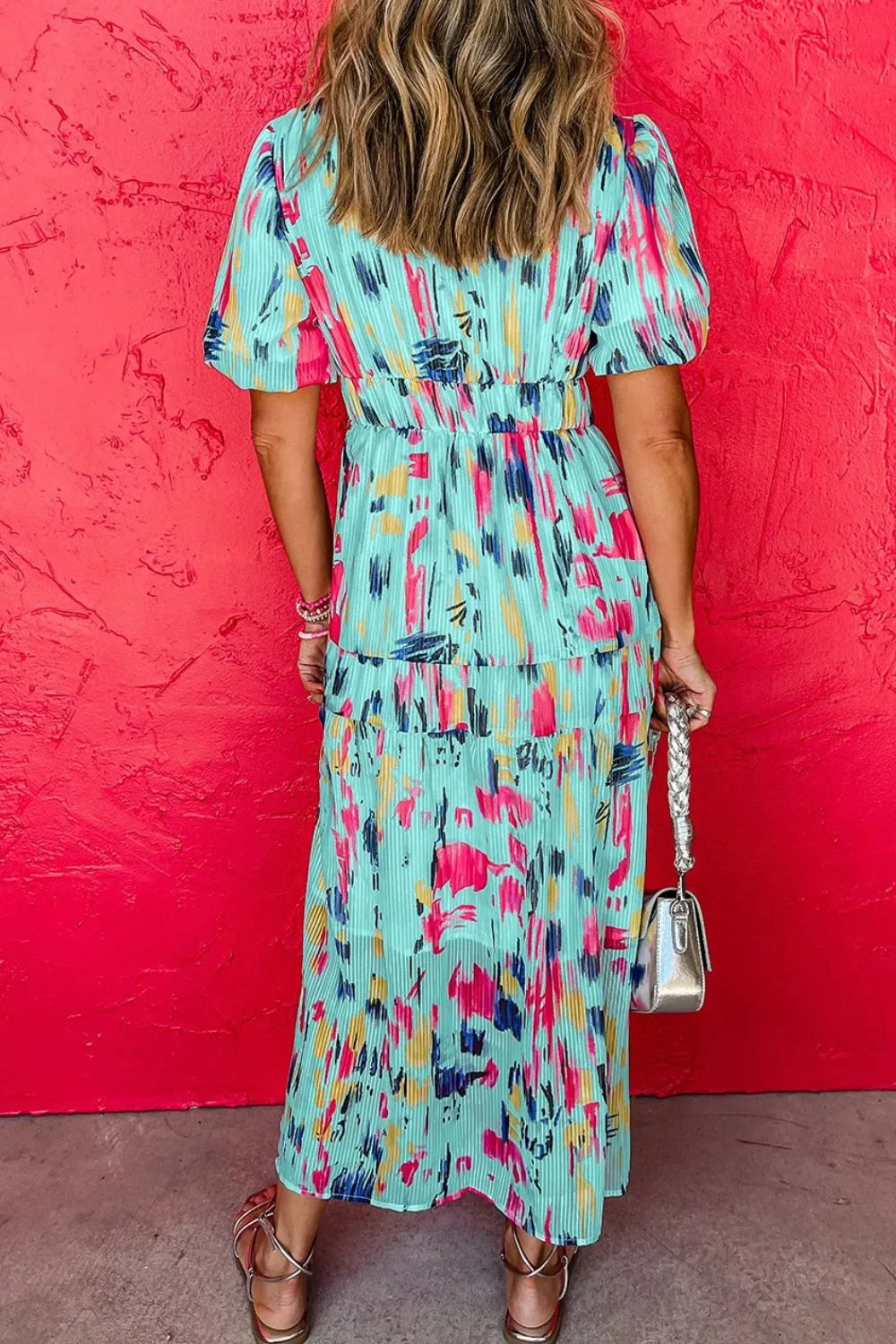 Abstract Print Short Puff Sleeve Tiered Maxi Dress