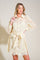 A lace mini dress featuring shirt collar, button down, long sleeve, self sash tie and cami