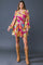 A printed woven mini dress featuring surplice neckline, long sleeve and true wrap skirt