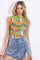 A printed mesh top featuring high neckline, sleeveless and ruched side