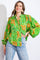 A luxurious woven top with exquisite printed details, showcasing a classic shirt collar, button down closure, and dramatic wide sleeves.. Matching short IP8331