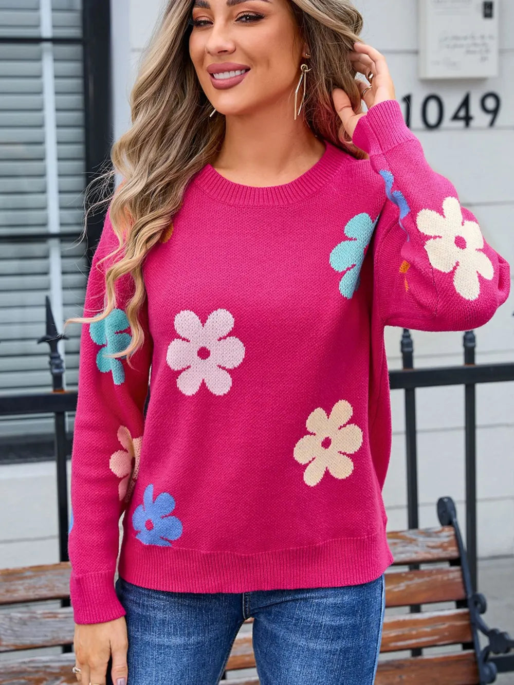 Angel Wings Flower Round Neck Long Sleeve Sweater