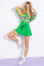 An acid washed twill skort featuring ruffled hemline, self sash tie and side zipper closure