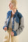 A tweed denim combination jacket featuring long sleeve and jewel button closure