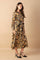 A printed woven midi dress featuring shirt collar, button down, self sash and long sleeve