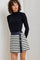 A textured striped woven skort featuring front button detail and denim trimmed edge. Matching jacket FJ1278