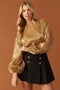 Indulge in the luxurious texture of our exquisitely crafted woven top, boasting a square neckline and elegant, short puff sleeves.