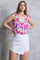 This CHARMING COMMOTION bodysuit offers the perfect combination of style and comfort for any occasion. Featuring a printed woven fabric, surplice neckline, to-die-for tie at the shoulders, and a stretchy mesh bikini bottom with snap closure, it's the perfect piece for a dressed-up casual look.