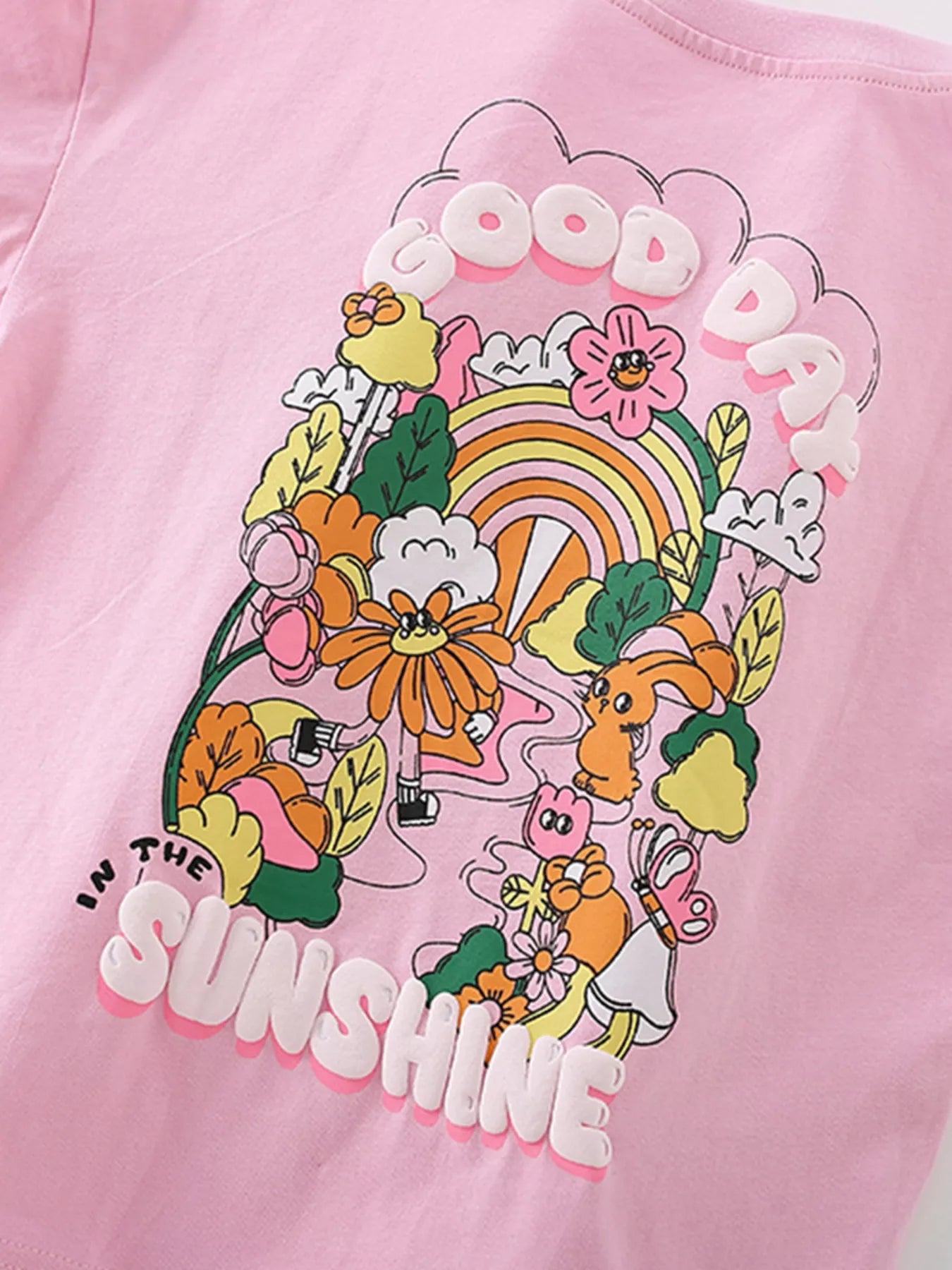 Children's Floral Print Short Sleeve T-Shirt & Shorts Set