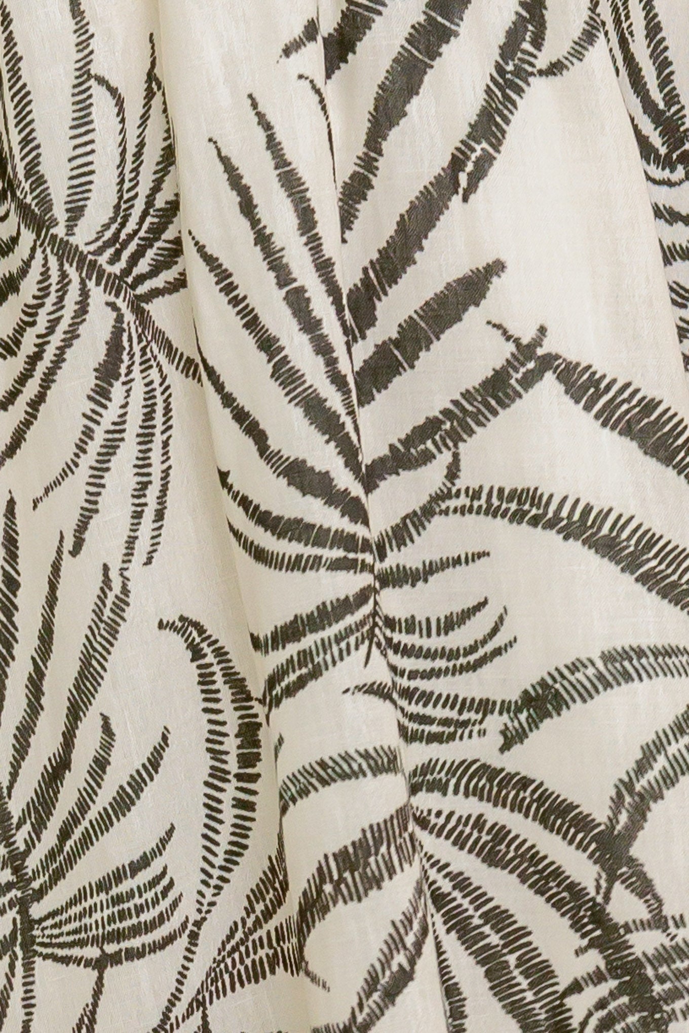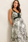 A printed woven maxi dress featuring V neckline, crochet trim strap and smocked back bodice