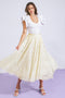 A printed woven midi dress featuring strapless, full skirt and smocked back bodice