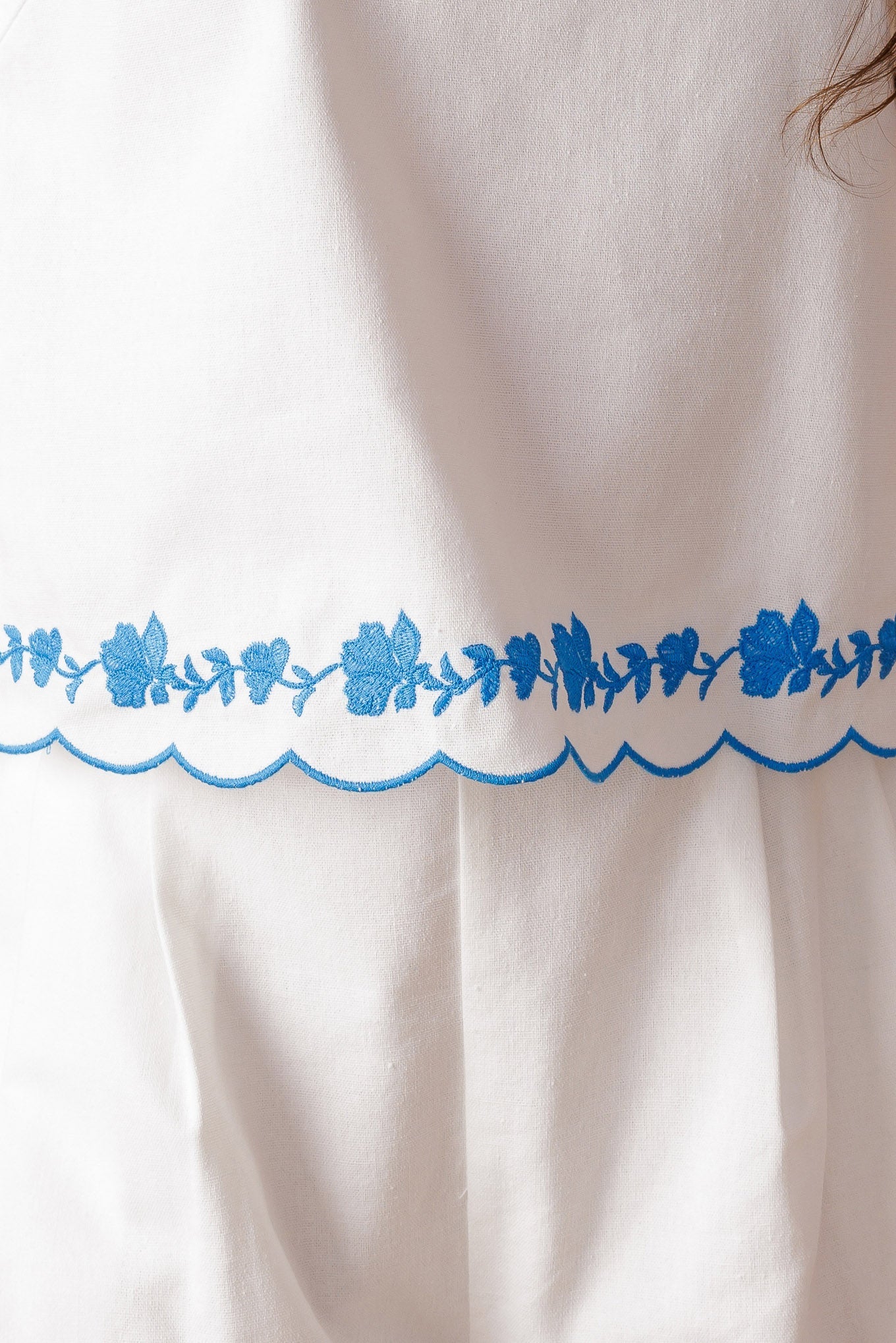 A solid woven top and short set. Top featuring square neckline, sleeveless and embroidered hemline. short featuring pleated front, flat front waistband, scalloped embroidered hemline and elasticized back waistband