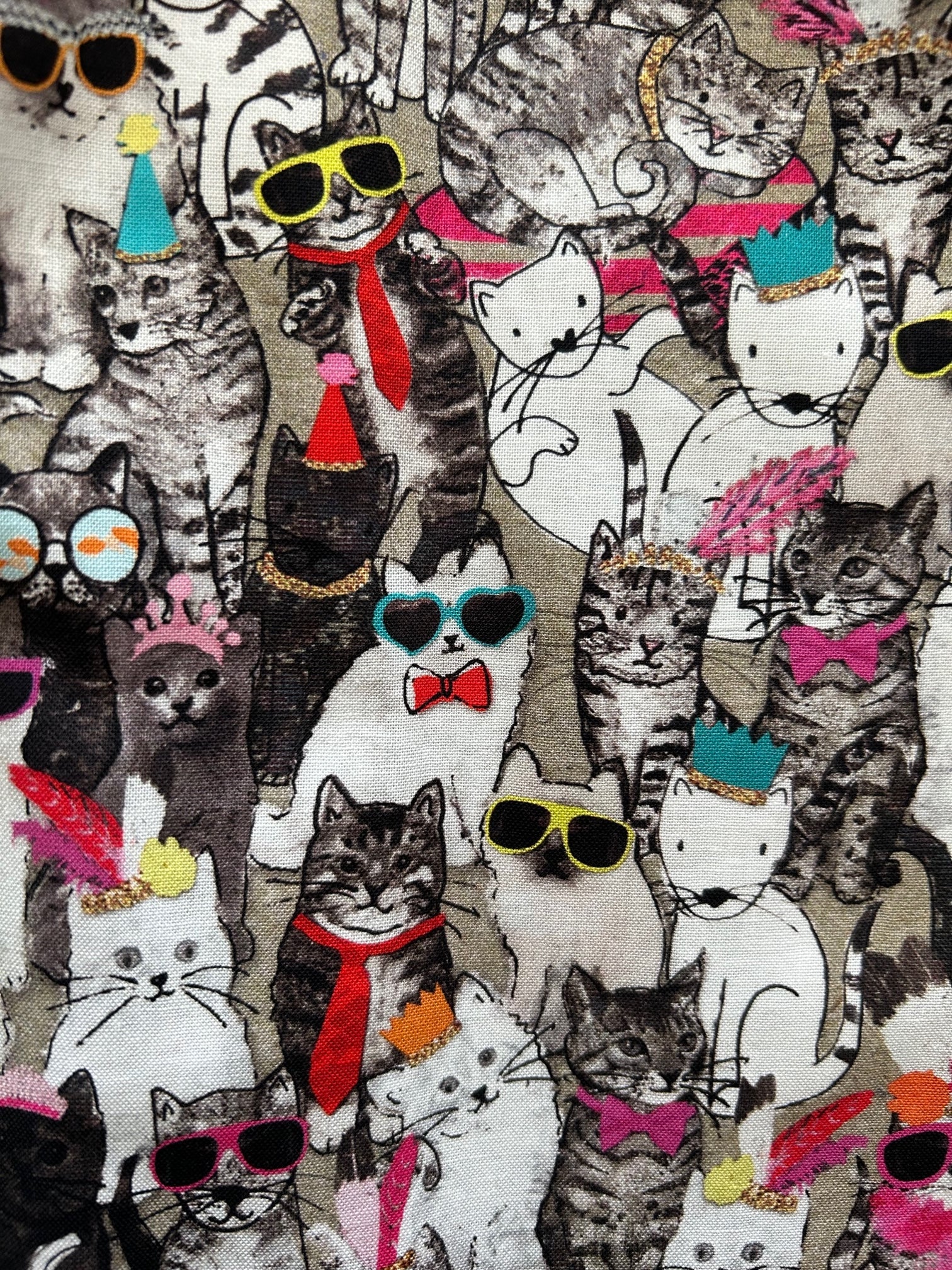 Classic and vintage inspired: our shorter length fit and flare is the perfect retro dress. Shown in our Cool Cats print, this retro dress features a scoop front and back neckline, elasticized waist in the back for ease of wear, a-line skirt with hidden side pockets, and a back zippered closure.