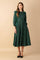 A textured woven midi dress featuring round neckline, long sleeve, A line skirt and back zipper closure