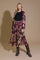 A sweater knit top and printed woven midi dress featuring round neckline, long sleeve and full skirt with self sash tie