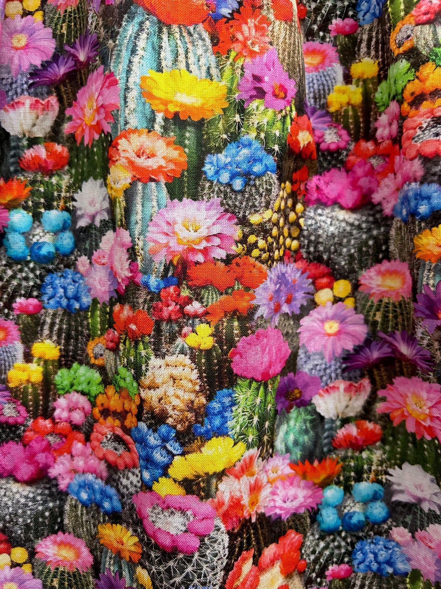 Embrace retro charm with our Desert Blooms Shorter Length Fit & Flare Dress. Featuring colorful, blooming cacti, this dress transports you to a playful vintage era. The fit & flare silhouette adds a touch of femininity, making it perfect for any occasion. Shop now and let your style bloom!