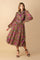 A printed woven midi dress featuring front bow tie, long sleeve, full skirt and smocked back waist band