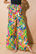 A printed woven pant featuring elasticized waist with tacked tie.