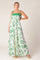 A printed woven maxi dress featuring straight neckline, shoulder tie with tassel and smocked back band