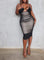 This bodycon midi is serving full glasses of GROWN WOMAN! Features a lined design with mesh overlay for added drama. The straps can be styled in multiple ways to fit your personal style.