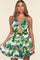 Featuring a Leaf Print mini dress design with a keyhole chest detail, a ruffled-trimmed skirt, and a self-tie bow at the open back and straps, this O-ring mini dress provides a charming aesthetic.