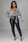 Fasheabe Long Sleeve Zebra Print Crop Top
