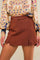 A solid woven skort featuring front slit at hemline, side zipper and self belt