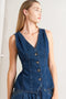 A solid mesh mini dress with pearl embellished mini dress featuring V surplice neckline, sleeveless, waist band, full skirt and smocked back waist band