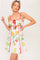 A printed woven mini dress featuring straight neckline, straps, shirred bust, A line skirt and back zipper closure