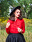Light, versatile, and oh so retro! The long sleeved Helen retro blouse is ready for whatever you have in store. Shown in a vibrant red color, this vintage inspired top features a bow tie front, long buttoned sleeves, and button up front. Wear with your favorite skirt or pants for a 1950's style or layer under a dress to show off your true fashionista!