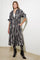 A printed woven denim midi shirt dress with self sash tie