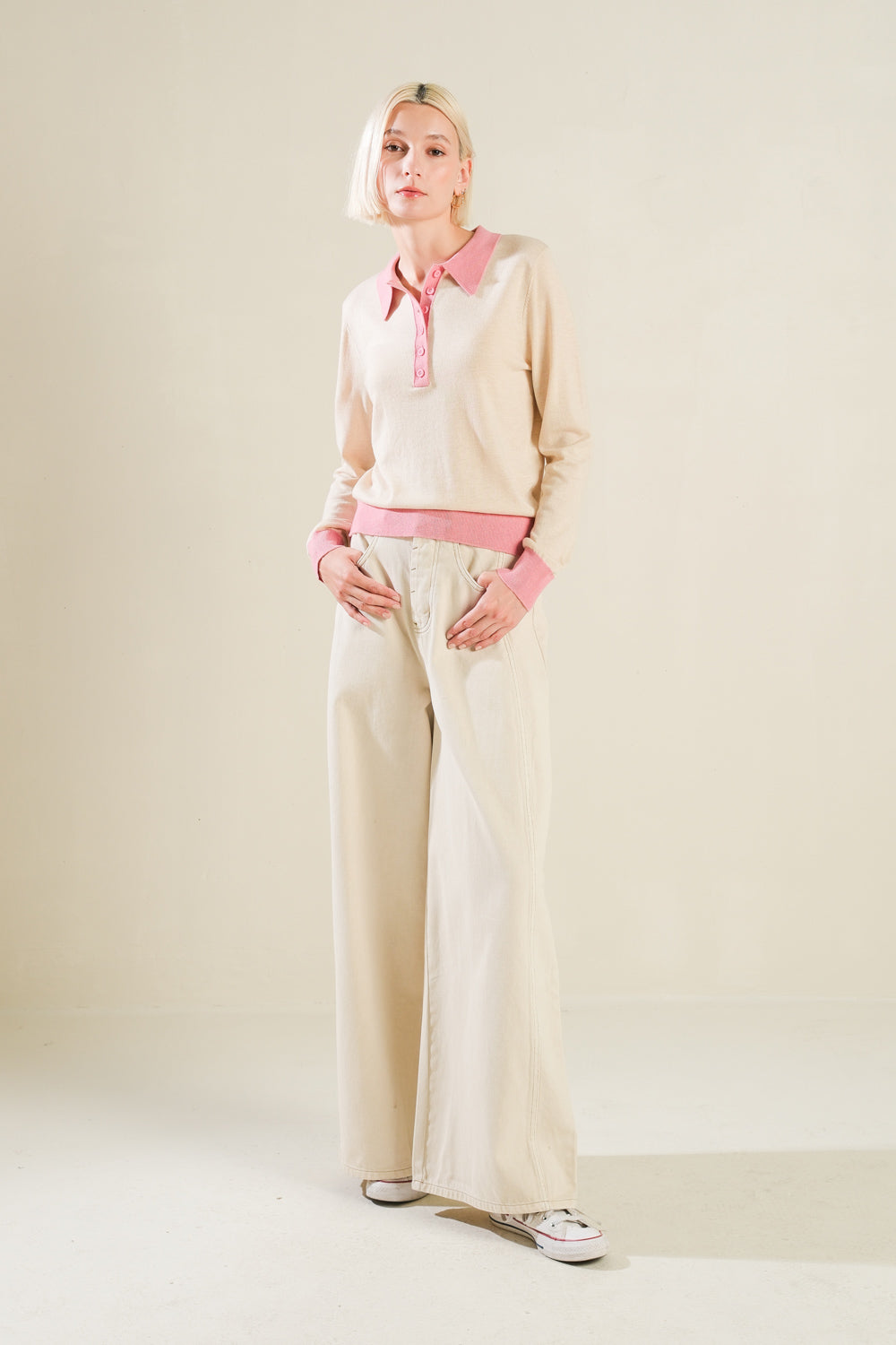 HIDDEN REFLECTIONS SWEATER POLO TOP