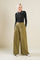 A solid woven pant with front closure, side pocket and wide leg. Matching jacket FJ1089
