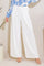 A solid woven pant featuring front closure, side pockets, and wide leg