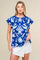 A printed woven top featuring round neckline, layered short sleeve and back neck button closure