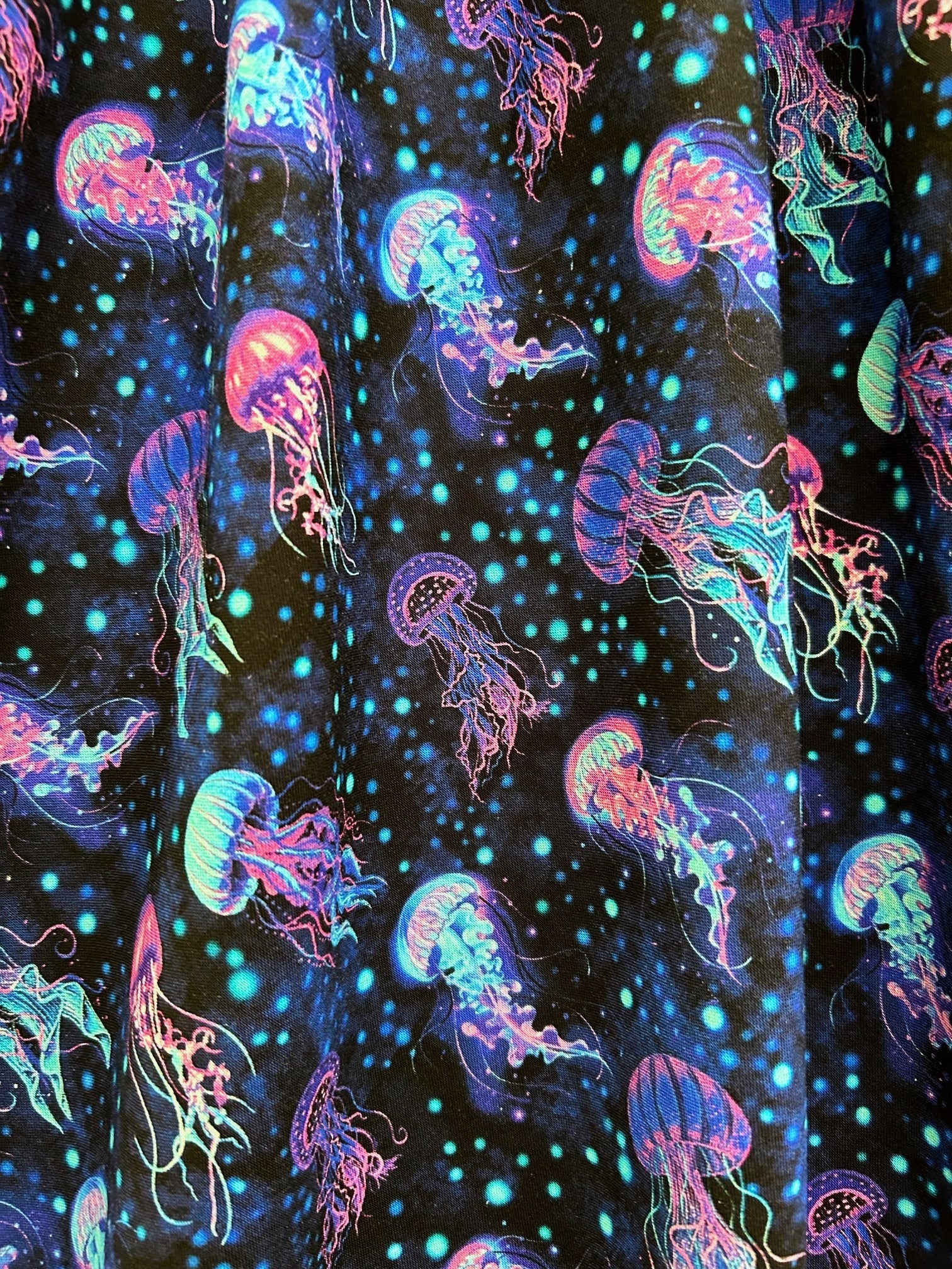 A vintage style piece with fun, modern details in our Jelly print. Made from 100% cotton, this classic 1950's inspired dress features a high neckline, longer length skirt with hidden side pockets and back zippered closure.