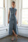 A washed denim midi dress featuring shirt collar, sleeveless, button down, front pocket and self sash tie