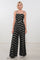 A textured denim jumpsuit featuring straight neckline, front pleat, side pocket, bare back with straps and zipper closure