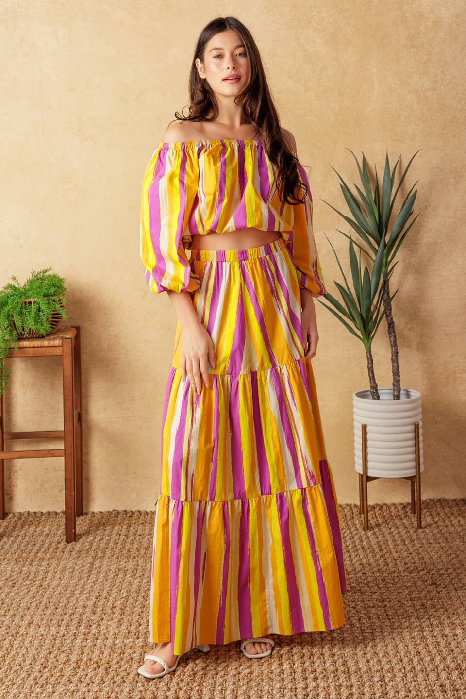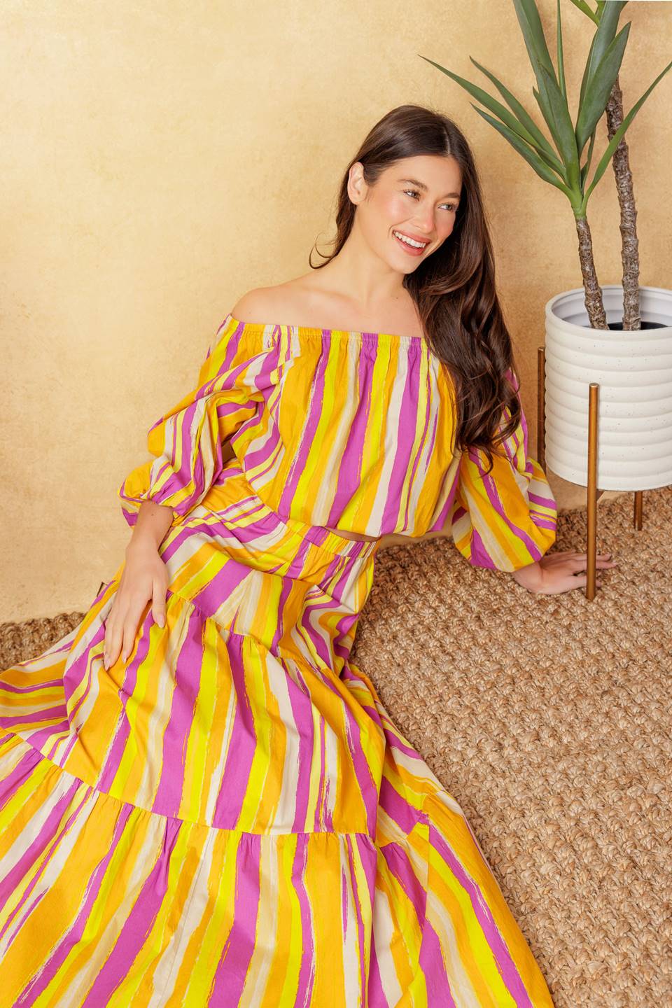 The LIGHT UP MY LIFE POPLIN TOP is a stylish and versatile choice for any wardrobe. This top features a flattering off-shoulder neckline, ¾ sleeve, and elasticized waist for an elegant fit. Made of lightweight and breathable poplin fabric, the top is great for any occasion.
