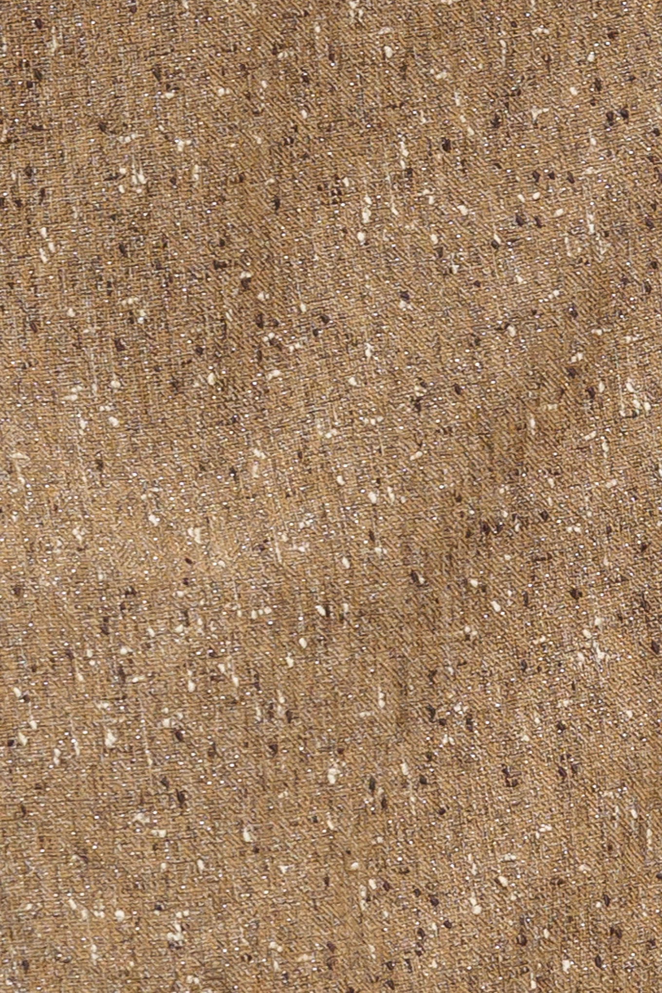 A woven tweed mini dress featuring round neckline, front double bow tie, short puff sleeve, faux pockets and back zipper closure
