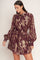 A metallic threaded woven mini dress featuring collar, bow tie, front button down and long sleeve with cuff