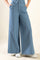High rise, wide leg, light denim pants that feature small white bow embroidery texture, a front closure zipper, and back pockets.